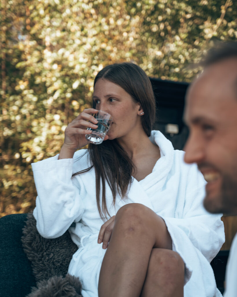 Fjellsauna med tilhørende kaldkulp og kalddusj. Plassert like ved siden av Matsalen på fjellstua. Badstuen har åpent for drop in juni- august og er åpen for gruppebestilling resten av året. Her får du nydelig utsikt over hele Refsvatnet og BaseCampen