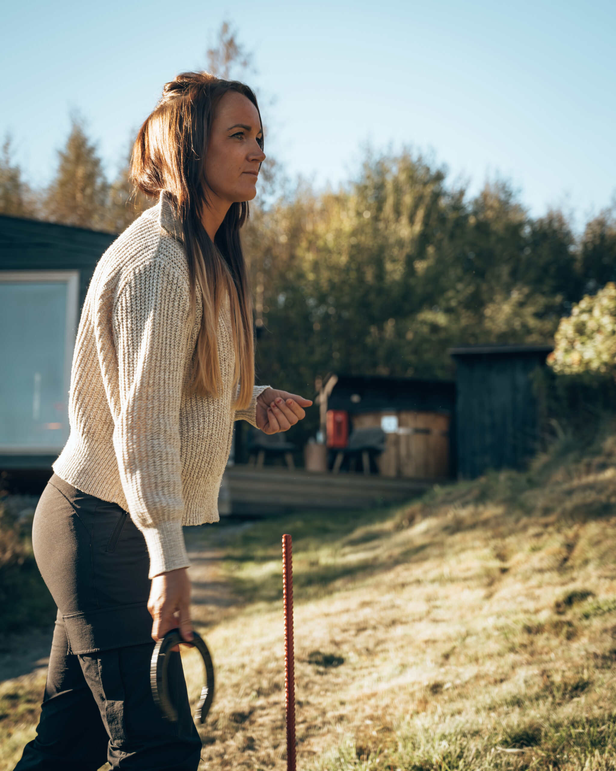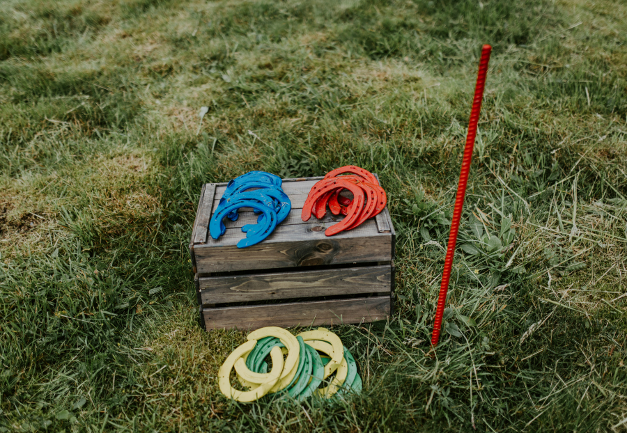 Tradisjonell og kjekk aktivitet. Hvem klarer å kaste hesteskoen nærmest stanga?